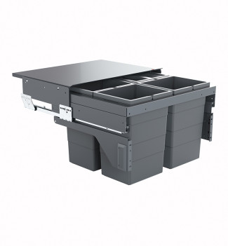 Poubelle de cuisine encastrable 28L Hailo AS Tandem - Gris Anthracite - 1 bac amovible de 28L - Ouverture de la poubelle Ă la...