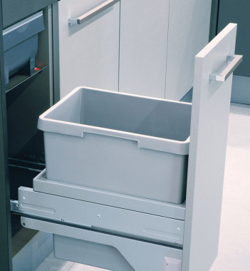 - Si vous en avez un, il faut opter pour un système de poubelle encastrable ne contenant pas de rails,