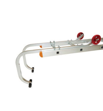 La première étape consiste à installer les roues et le crochet de faîtage sur l’échelle de toit. Retrouvez ici la notice de montage du crochet de faîtage de la marque Hailo. Pour les crochets d’autres marques, référez-vous à leur notice.