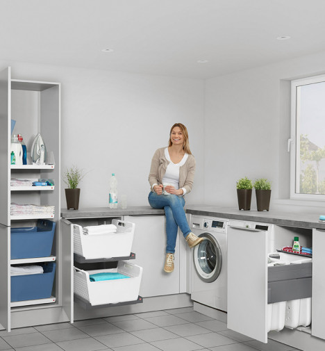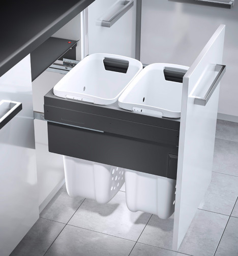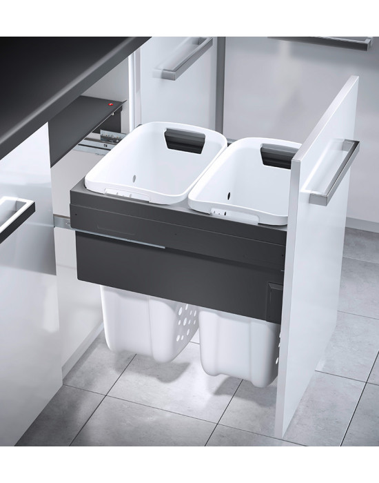 Double panier à linge Hailo Laundry Carrier 500 - Capacité 66 litres - Anthracite - 2 bacs amovibles de 33L - Ouverture manuelle - Conçu pour meubles à porte coulissante sans tiroir d'une largeur minimum de 50 cm - Se fixe sur les parois intérieures - Gain de place - Tri du linge plus facile - Montage simple et rapide