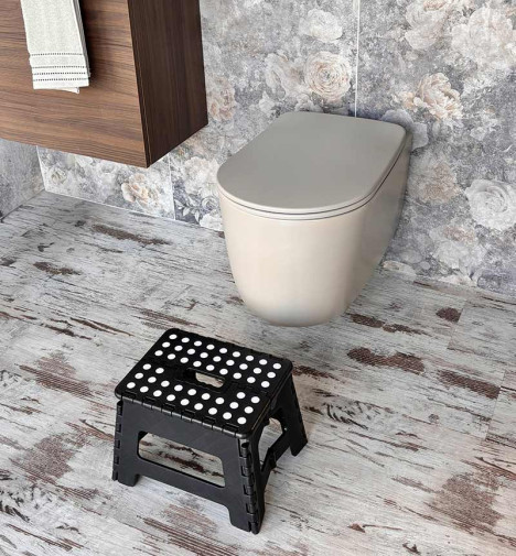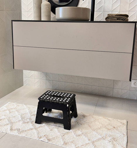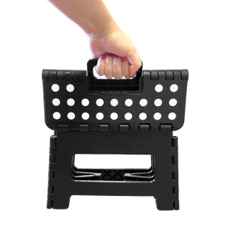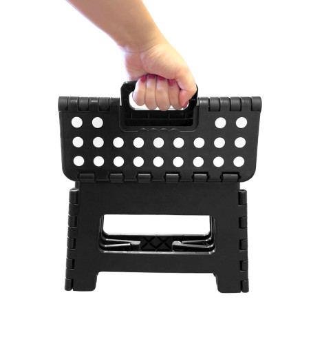 Marche pied pliant en plastique Selekta 1 marche - Tapis antidérapant 21x28 cm - Poignée intégrée - Ultra fin une plié - Plateforme antidérapante - Embouts antidérapants - Idéal pour une utilisation au quotidien - Compact - Hauteur de la marche : 22 cm