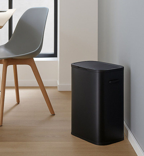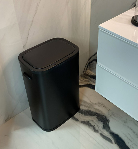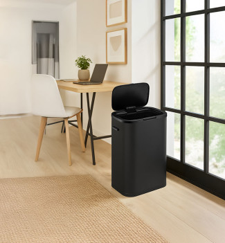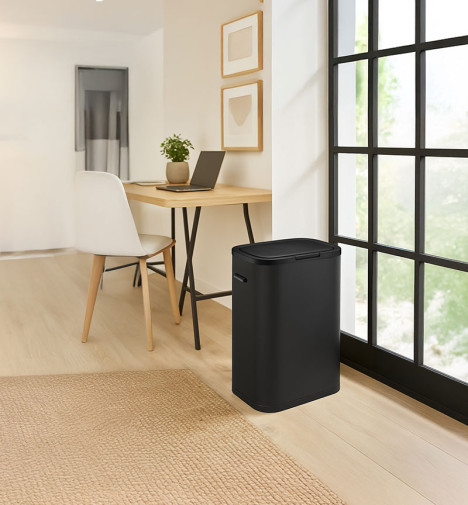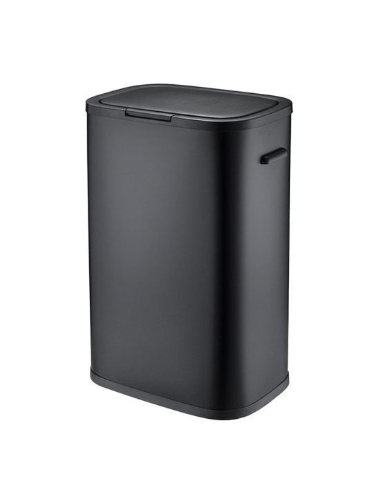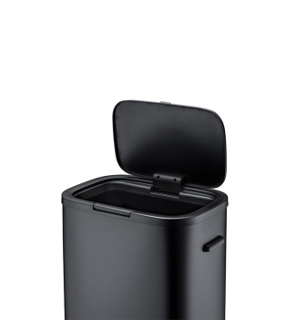 Poubelle de cuisine grand volume à ouverture manuelle Hailo PUSH 60L - Noir Mat - 1 bac de 60L - Corps et couvercle en acier finition peinture époxy - Ouverture par pression "Push" - Anneau de fixation pour sac poubelle - Socle antidérapant - Poignées de transport - Ne nécessite aucun montage - Design épuré